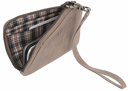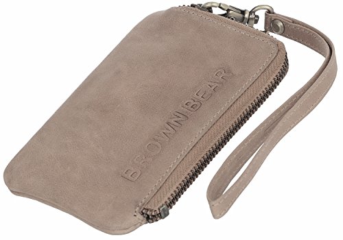 -. Feature : unverbindliche Preisempfehlung des Herstellers 29,95 EUR per Stück / Damen Handytasche Leder, 3 Steckfächer für Karten oder Belege, abnehmbare Handschlaufe, cooles Design mit Reißverschluss, Rindsleder Vintage Used Look Leder Farbe grey, sportliches Innenfutter, Brown Bear Vintage Nikki / Maß ca. 13,5 x 2,0 x 8,5 cm / Geschenkschachtel / BROWN BEAR DESIGN GERMANY
