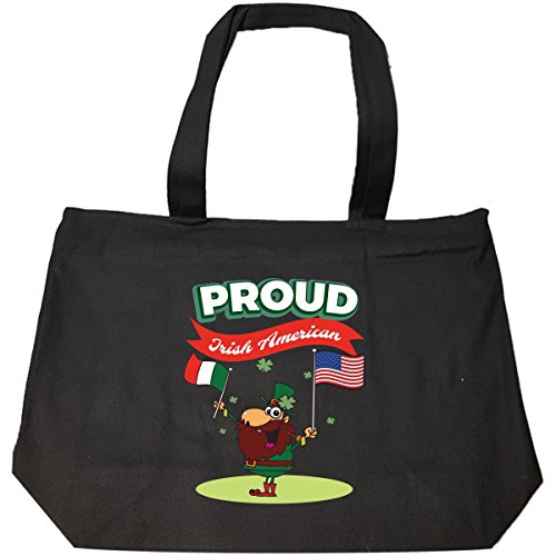 (Groovy Gifts For All)/Accessories/Handbags/DIRECT FROM USA/Proud Irish American Leprechaun Waves Irish And U.s. Flag - Tote Bag With Zip