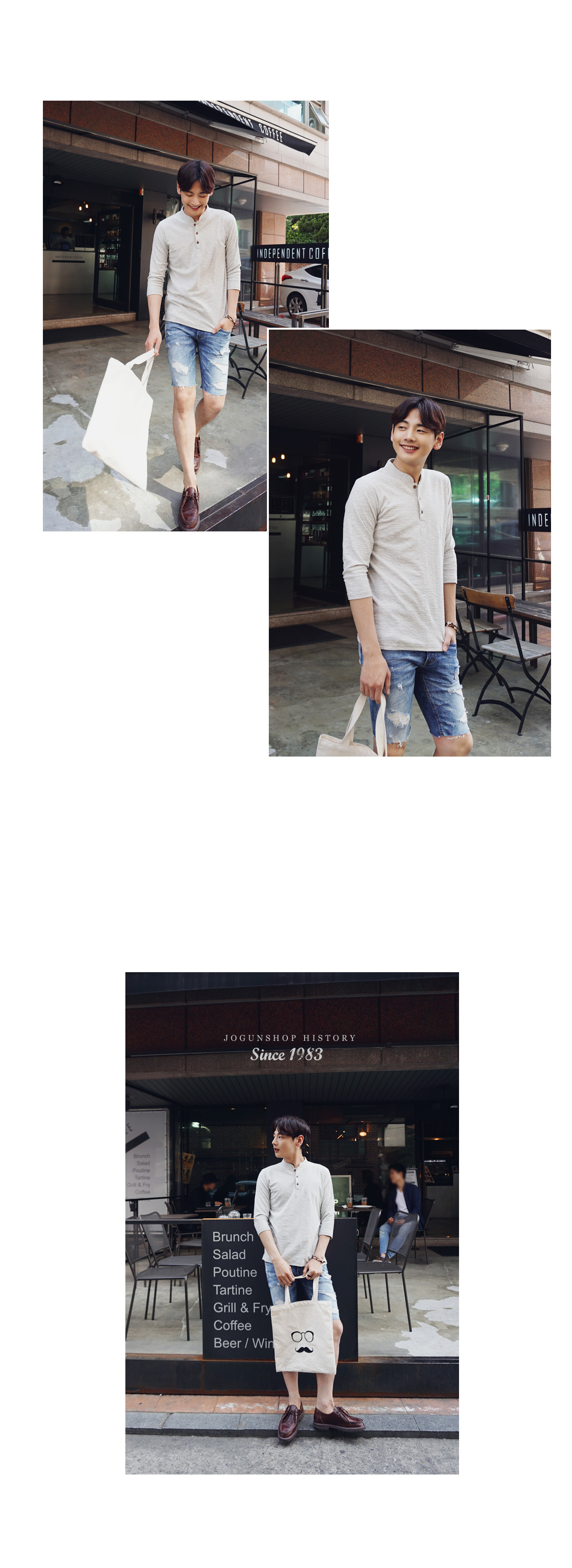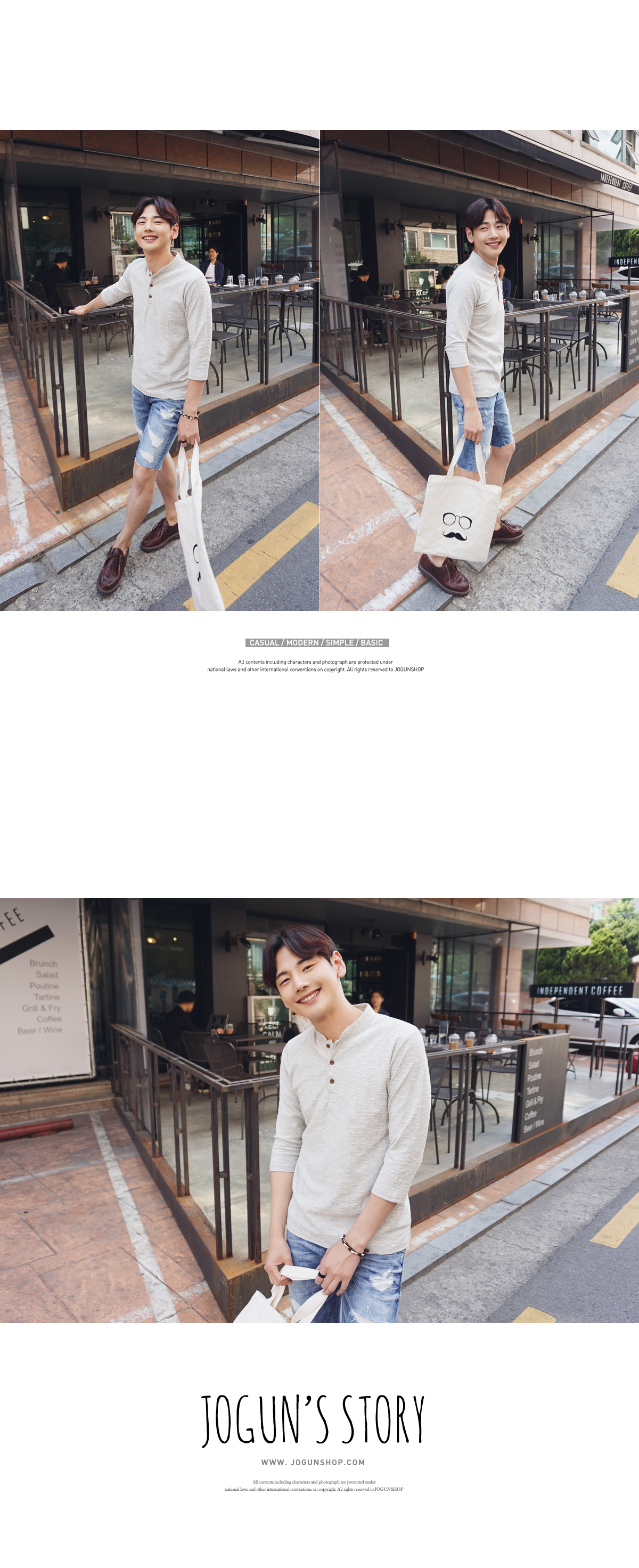 | 오직 조군샵에서만 만나볼 수 있는 스타일리쉬한 헨리넥 티셔츠. 시원한 두께의 20수 슬라브 소재를 사용하여 높은 퀄리티를 보여주는 아이템이다. 트렌디한 감성과 편안함을 보여주는 7부헨리넥 티셔츠이다. 견고한 짜임으로 틀어짐없이 잘 잡아주며 헨리넥 특유의 디테일로 단벌만 입어도 충분히 멋을 낼 수 있으며 레이어드해서 활용을해도 충분히 멋스럽게 연출할 수 있는 아이템이다. 부드러운 면소재로 장시간 오래입어도 불편함이 없고 캐주얼한 스타일뿐만 아니라 댄디한 스타일에도 잘 어우러지는 아이템이다. |