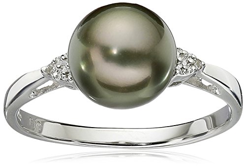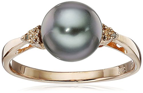 Rose Gold with Diamond Over Silver 8-9mm Round Black Tahitian Cultured Pearl Ring, Size7