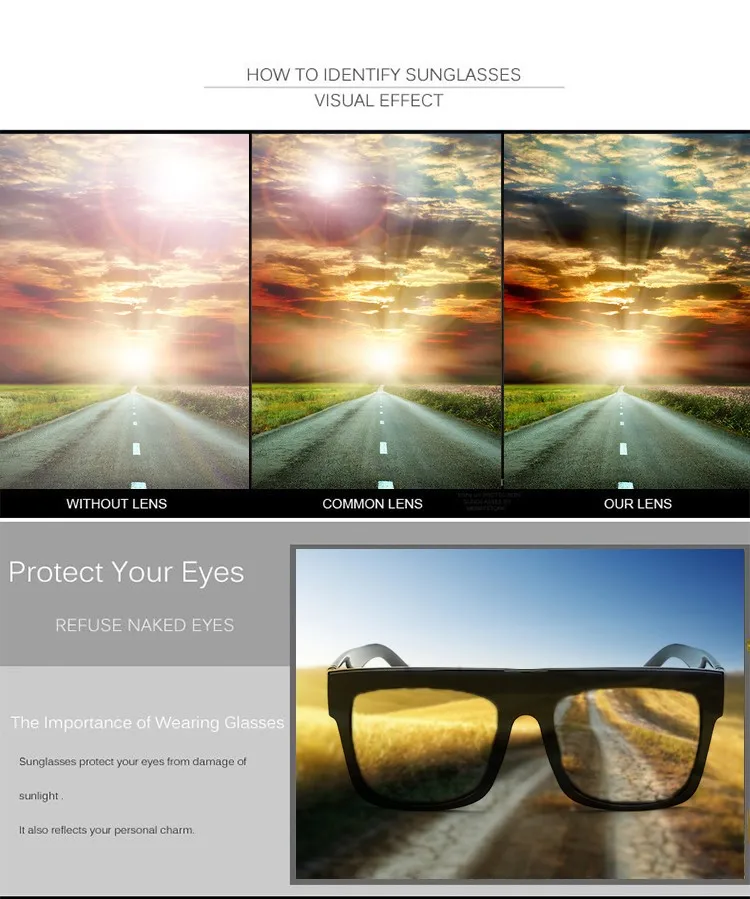Lens Material:100% UV 400 Protection against harmful UVA/UVB