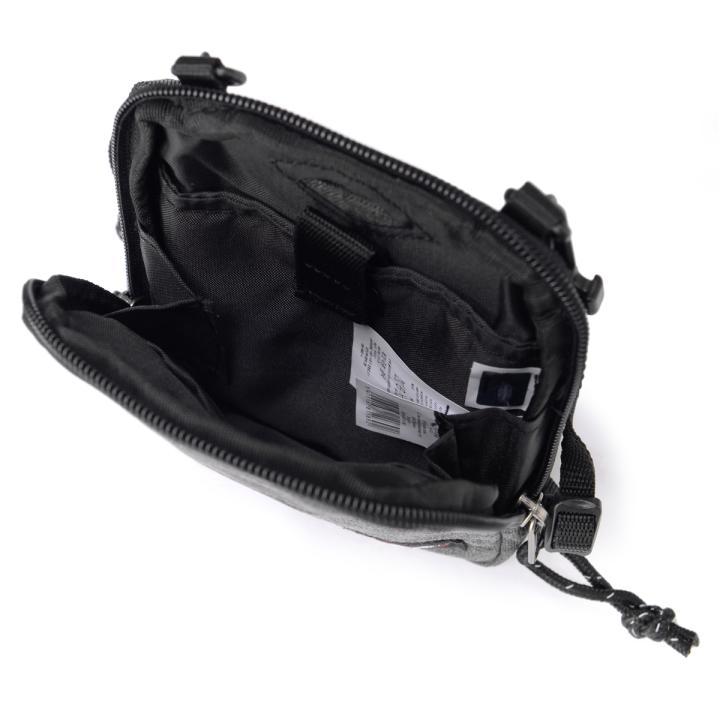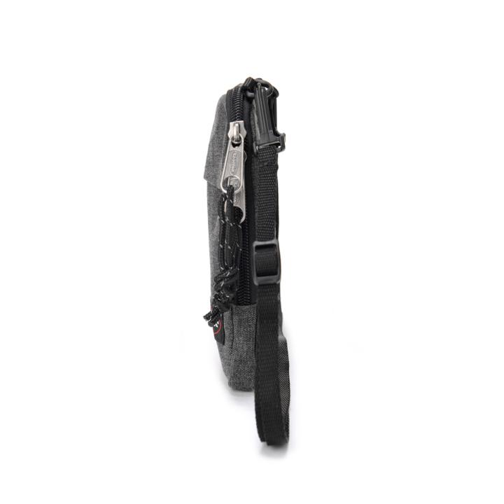 간단한 나들이나 여행용 보조 가방으로 사용하기 좋은 미니 크로스백입니다. 지퍼로 여닫을 수 있는 메인수납공간에는 벨크로 처리 된 포켓 1개와 일반 포켓 1개가 있어 핸드폰이나 MP3, 혹은 메모지등을 안전하게 수납할 수 있으며, 제품 뒤쪽에는 이어폰을 연결 할 수 있는 구멍이 있어 전자기기를 가방에 넣은 상태에서도 음악을 들을 수 있습니다. 전면에 있는 주머니 는 따로 지퍼가 없어 자주 사용하는 간단한 휴대품들을 편하게 넣고 꺼낼 수 있습니다. 또한 탈부착 가능한 어깨끈이 있어 필요시 간단한 파우치처럼 가방 안에 깔끔하게 보관 할 수 있는 유용한 보조 크로스백입니다.