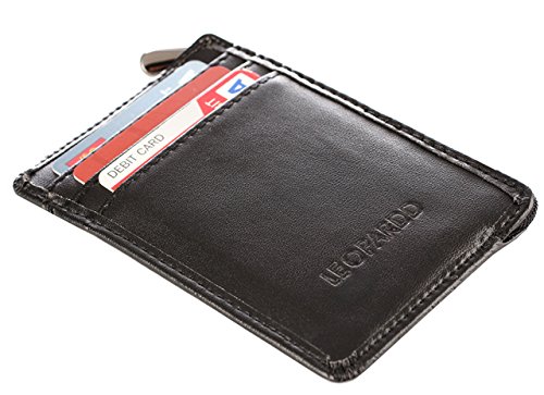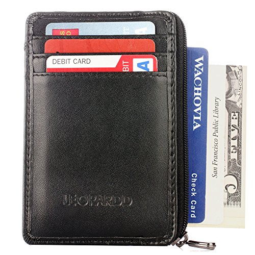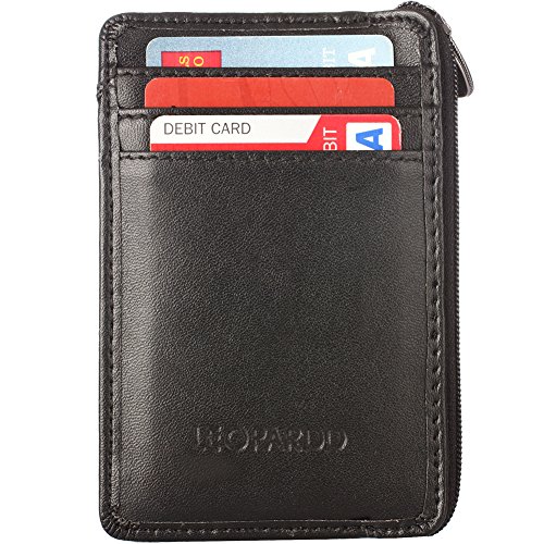 RFID Blocking Sleeves Leather Wallet Front Pocket Slim Wallet Mini ID Window RFID Safe Sleeve...
