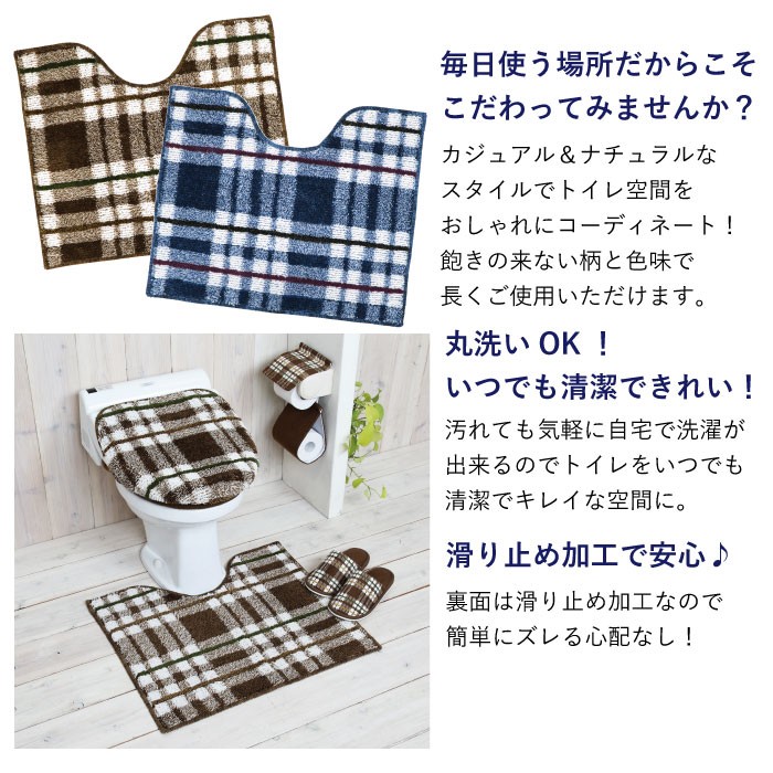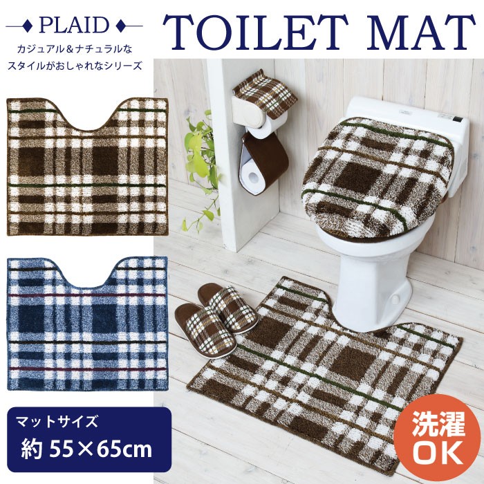 モコモコの肌触りが気持ちいいおしゃれなチェックのトイレマット。