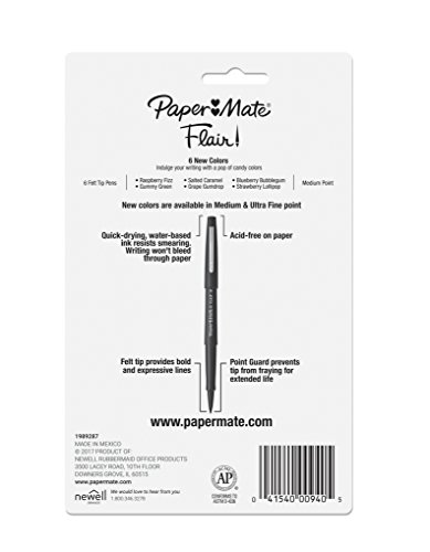 -. Title : Paper Mate Flair Felt Tip Pens, Medium Point, Limited Edition Candy Pop Pack, 6 Count (1982365)