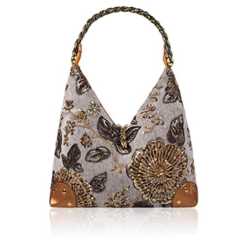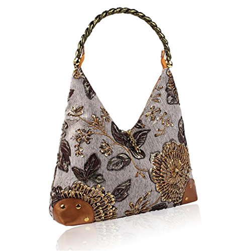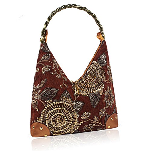 Product Description Description This classic handbag is made of Unique retro wind design, selection of high-quality embroidery tablets, never fading. This is 2 layer flower embroidered boho handbag with both sides fully sequins beads flower for decoration, which give you a sense of retro and elegant. It is perfect for everyday use, and also a great gift to your friends.