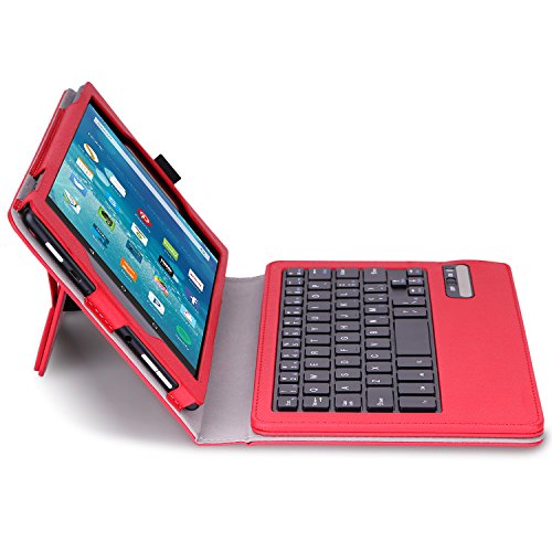 MoKo Keyboard Case for Fire HD 8 2015 - Wireless Bluetooth Keyboard Cover with Auto Wake / Sleep for Amazon Kindle Fire HD 8 Inch Display Tablet (2015 Release Only), RED