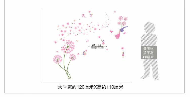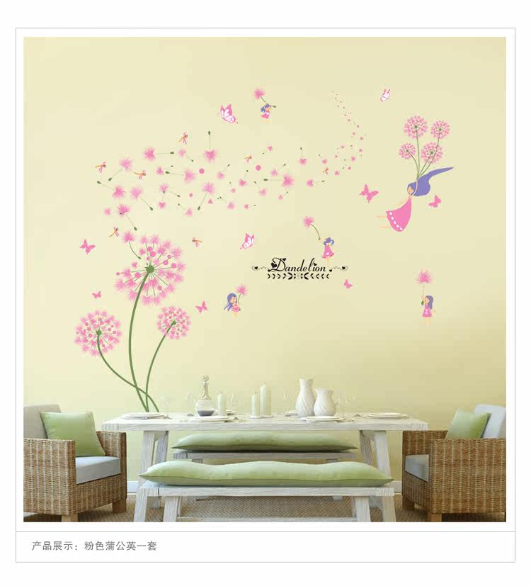 可移除墙贴纸贴画沙发卧室房间墙壁装饰墙花温馨粉色蒲公英女孩