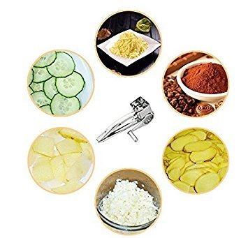 Simply insert food into the hopper and turn handle to grate or shred.it's so easy to use the product comes with four different drums for 4 different shapes to grate.DISHWASHER SAFE.