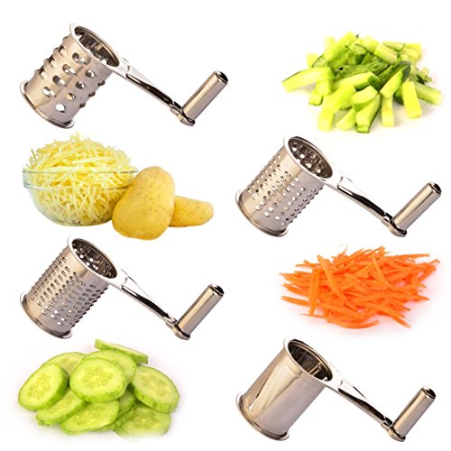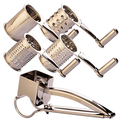 Four different rotary drums sharp cylinders stainless steel blades for all types.You can interchange for either fine grating or coarser grating of your ingredients.