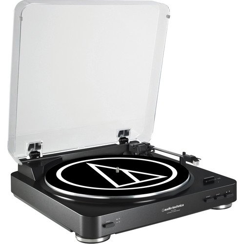 Audio Technica AT-LP60BK Turntable with Knox Carbon Fiber Vinyl Brush and Cleaning Kit - Black