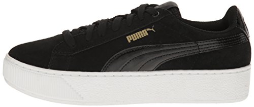 PUMA Women's Vikky Platform, Puma Black-Puma White-Metallic Gold, 6 M US