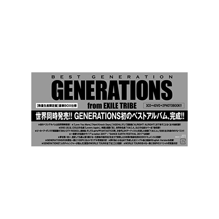원본상품명: 【早期購入特典あり】BEST GENERATION(ALBUM3枚組+DVD4枚組)(量限定生産盤)(A4サイズオリジナルクリアファイル&ニュイヤカド(Aタイプ)付)