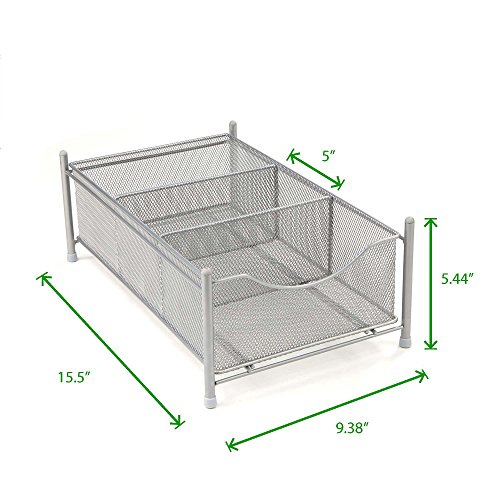 Mind Reader 3 Compartment Metal Mesh Storage Bin Organizer, Silver