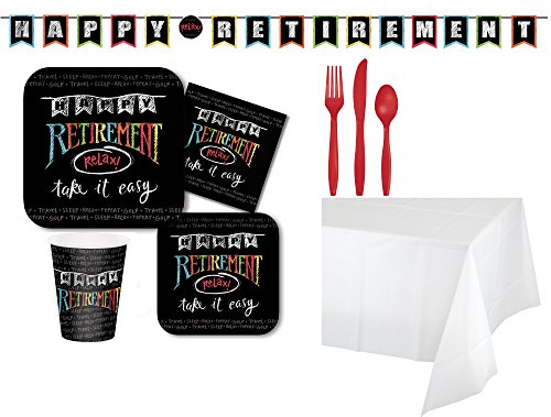 Retirement Chalk Themed Party Supplies Pack Kit for 8 Guests
