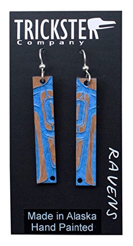 -. Binding : Jewelry -. Brand : Trickster -. Department : womens -. Feature : Made in Alaska. / Alder, Acrylic Paint, Sterling Silver. / Designed and made by Rico Worl. / Rico Lanaat' Worl (Tlingit/Athabascan) lives in Juneau, Alaska. His art is a focused study in learning Formline design, the traditional design style of the Indigenous Northwest coast. -. Label : Trickster Company -. Manufacturer : Trickster Company -. PackageQuantity : 1 -. ProductGroup : Jewelry -. ProductTypeName : FASHIONOTHER -. Publisher : Trickster Company -. Studio : Trickster Company -. Title : Trickster Company Northwest Coast Native Art Raven Design Earrings