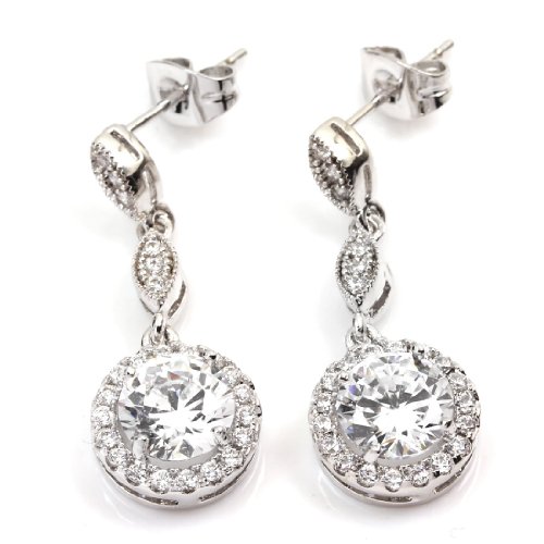 -. Title : FC JORY White & Rose Gold Plated Diamante Crystal CZ Round Necklace Earring Studs Jewelry Set