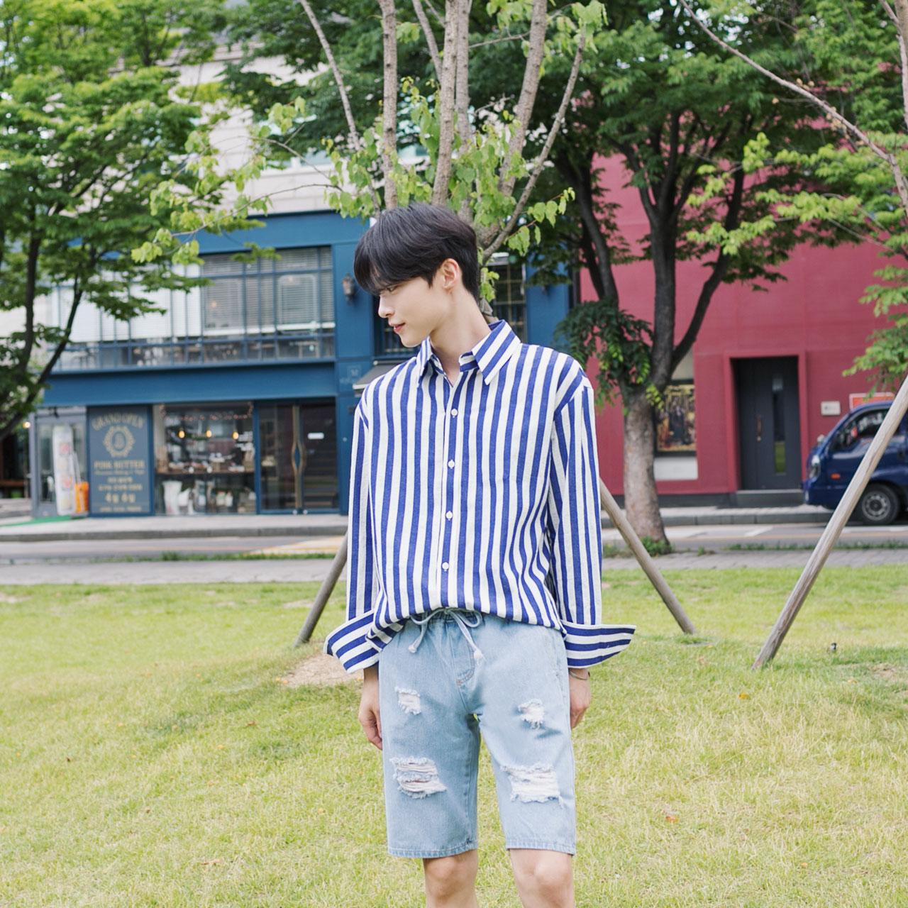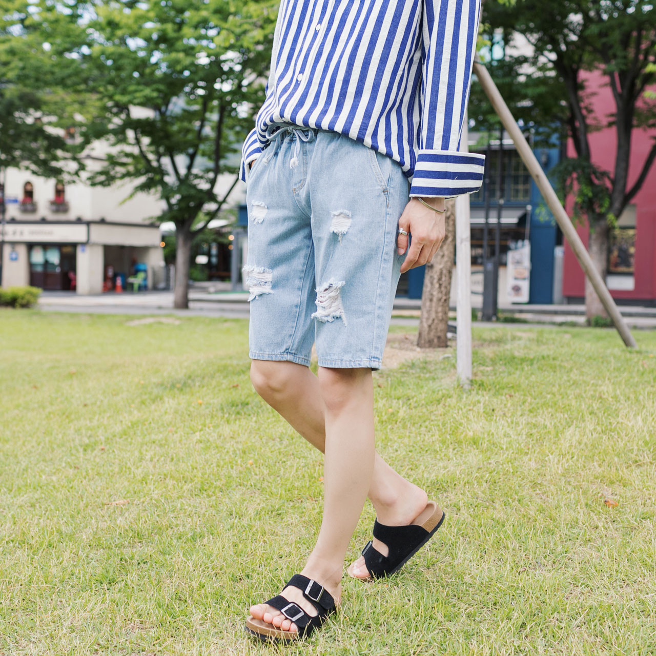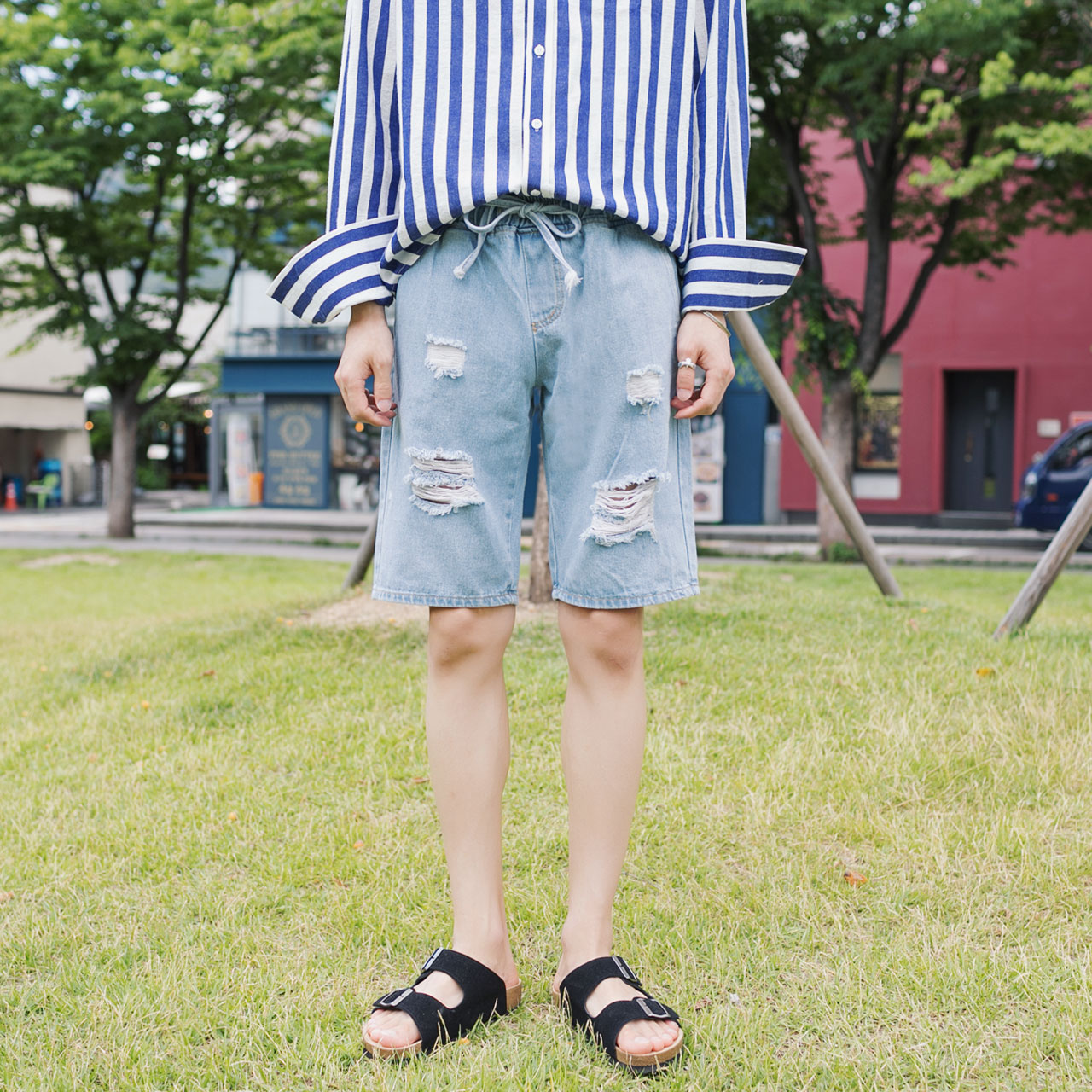 사이다 디스트로이드 밴딩 청반바지