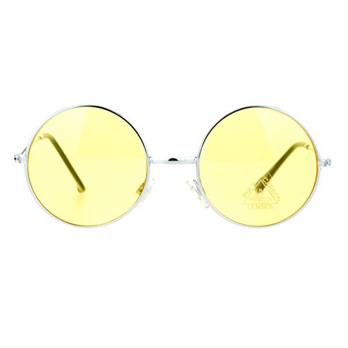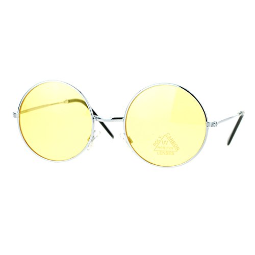 Retro unisex round circle lens musician activist sunglasses with ornate engraving arm. (m8609clfm)