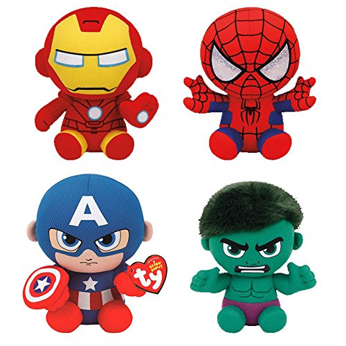 -. Feature : Set of 4 incluide: spiderman, captain america, hulk and iron man. / From the ty beanie babies collection. / Brand new with ty heart tags. / Approximate size: 6 inches. / Free gift: 1 piece funchop chopstick helper.