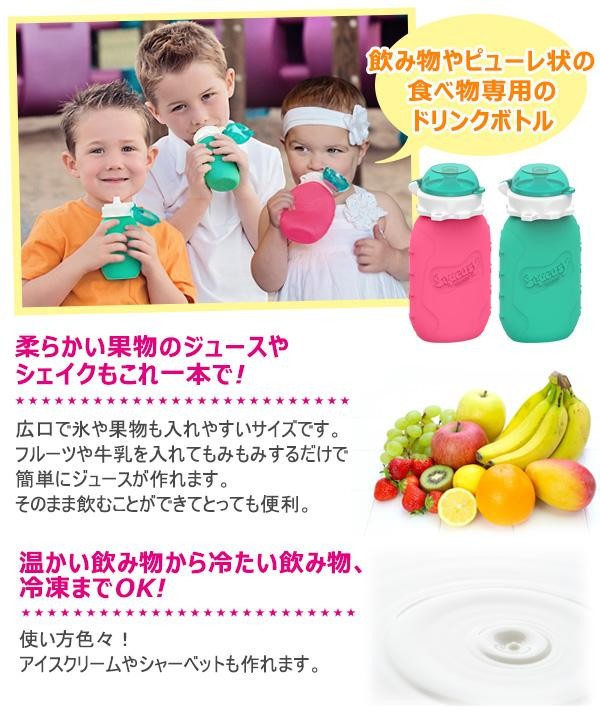 ヨーグルト、ピューレ、スムージーなどトロトロとした食べにくいものや、こぼして欲しくない牛乳などを汚さず飲ませたり、食べさせたりできる画期的なボトルです。 |