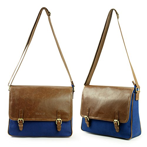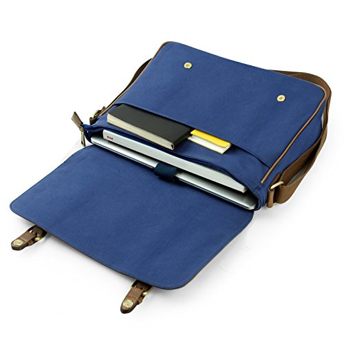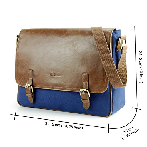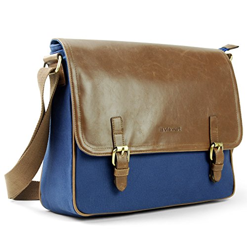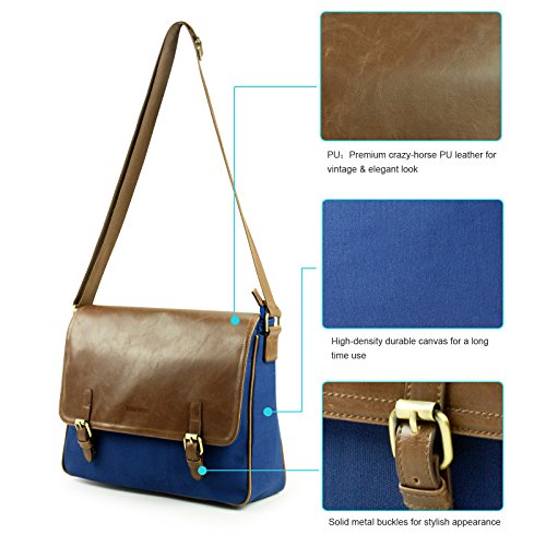 -. Title : Lavievert Cotton Canvas Padded Laptop Bag / Crazy-Horse PU Leather Messenger Bag / Vintage Travel Briefcase / Cross Shoulder School Bag - Fit Most Popular 13-13.3 Inch Laptop