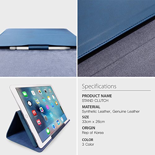 Araree iPad Pro Case, [Stand Clutch] Premium Leather Soft Touch with Stand Cover Clutch Case Compatible with iPad Pro and Most 12-Inch Laptops (2016) (Ash Blue)
