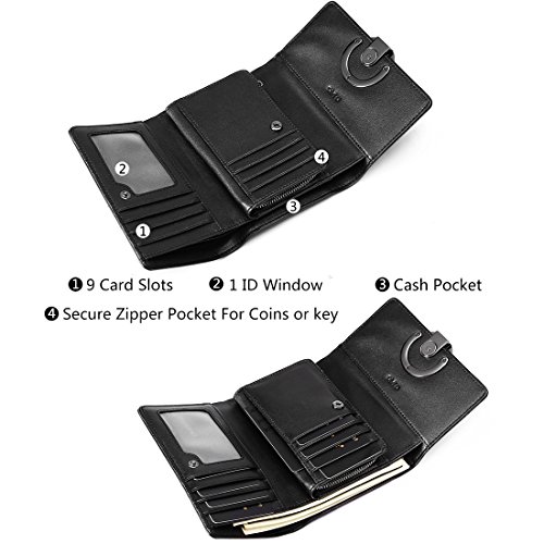 - 💗💗INTER STRUCTURE:This is a tri-fold leather wallet, 8 card slot pockets, 1 ID window, 1 zipper pocket, 1 cash pocket. Roomy enough for fitting your cards, change, coins,key and some bills, keep them well organized.