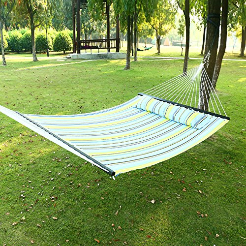 Two’s a party: Its spacious, sturdy 127” x 55” frame supports up to 450lbs for two adults, so no one gets left out on the swinging fun