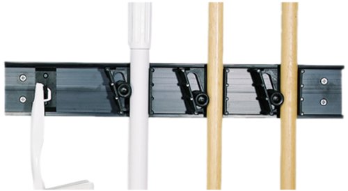 - Feature : Keeps brooms and brushes handy and secure / Racks help prevent damage to bristles, handles, walls, and counters / Promotes fast drying of mops and wet broom bristles / System is adjustable for a variety of brooms and brushes with a unique system of plastic roller grippers that self-adjust to different handle diameters / Comes with a convenient hook that can be used to hang slotted handle tools and brushes