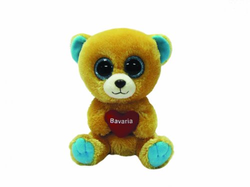 TY 7136119 - Bavaria - Bär mit Glitzeraugen, Glubschi, 15 cm, hellbraun/blau mit rotem Herz