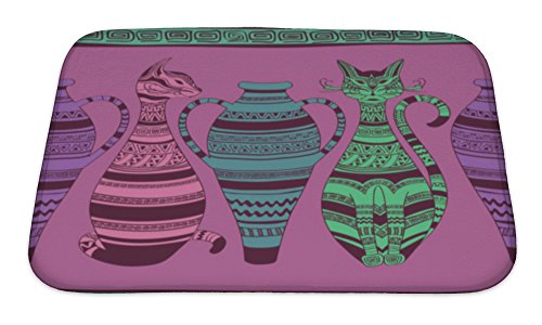 Gear New Ethnic Pattern with Ornate Cats & Vases Bath Rug Mat No Slip Microfiber Memory Foam