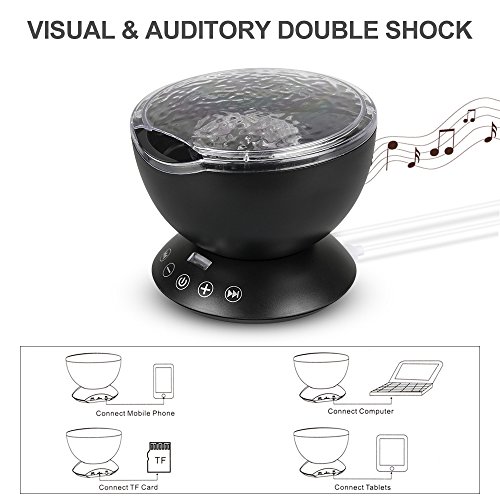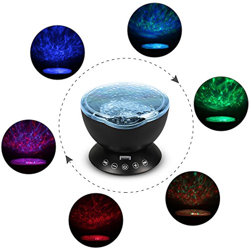 - Newest Ocean Wave Design: This cute rotating ocean night light with remote controller& touch senor keys, more convenient for your operation. If you want to turn on/off the ocean projector, change lighting mode, adjust the volume, and even set automatically turn off timer.