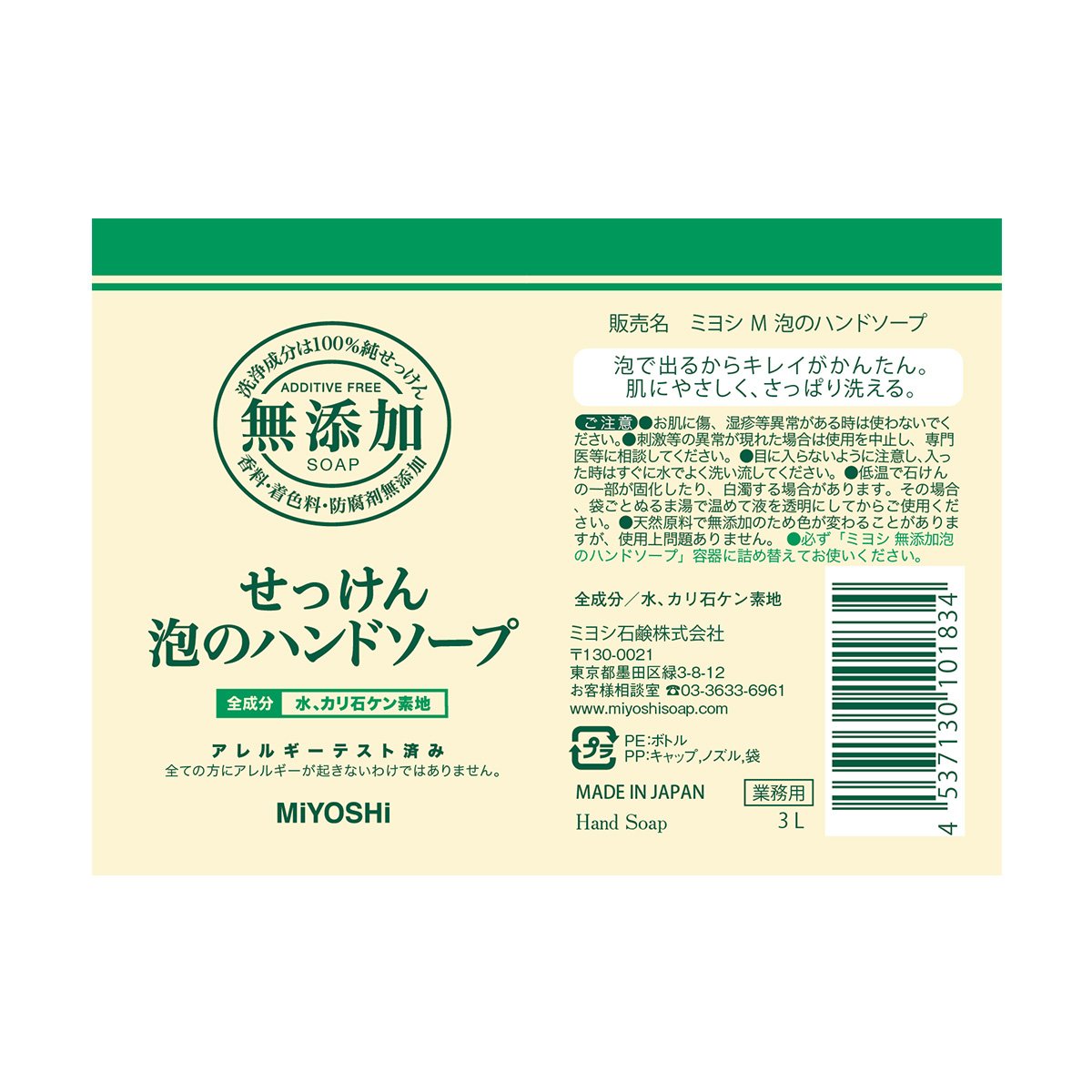 · Be sure to refill the container with "Miyoshi no added foam hand soap" container.