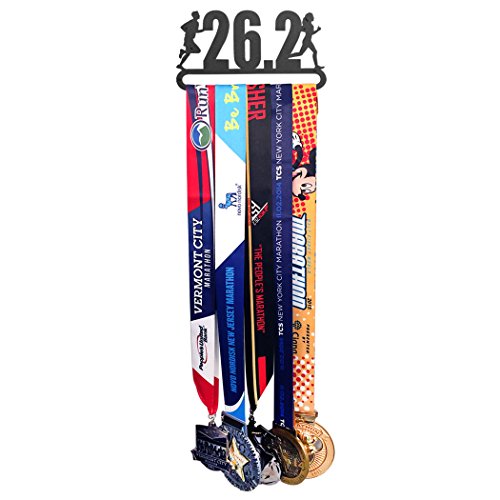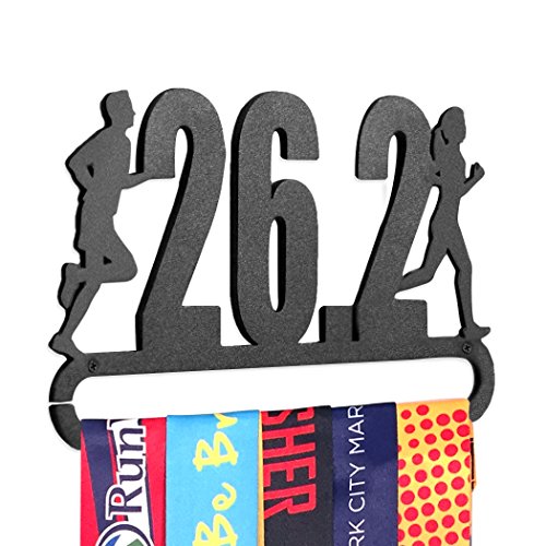 DISPLAY YOUR 26.2 MEDALS WITH PRIDE! Running a marathon takes dedication and commitment. Be proud and show off your hard earned medals. Simply, slide up to 6 medals on the bottom bar to display. Hang on any wall around the house or office. The perfect gift for any runner!