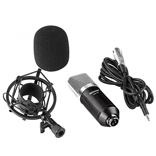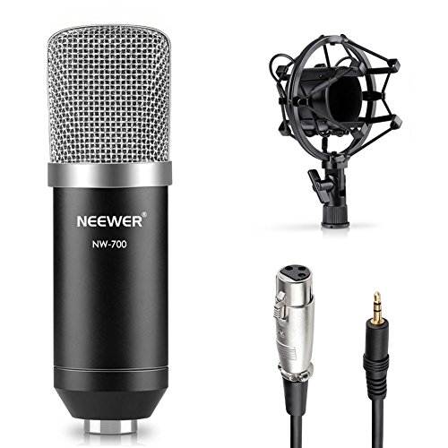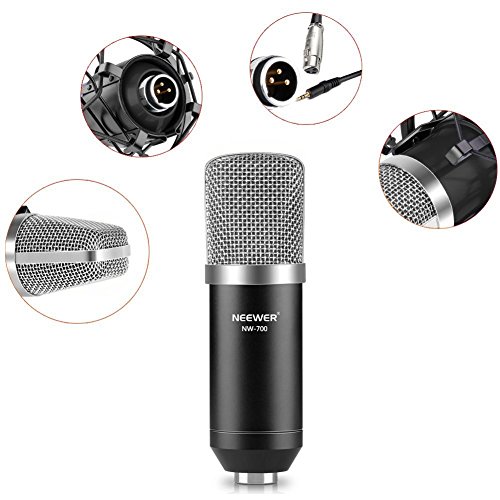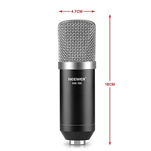 Neewer® NW-700 Professional Studio Broadcasting & Recording Condenser Microphone Set Including: (1)NW-700 Condenser Microphone + (1)Metal Microphone Shock Mount + (1)Ball-type Anti-wind Foam Cap + (1)Microphone Audio Cable (Black)