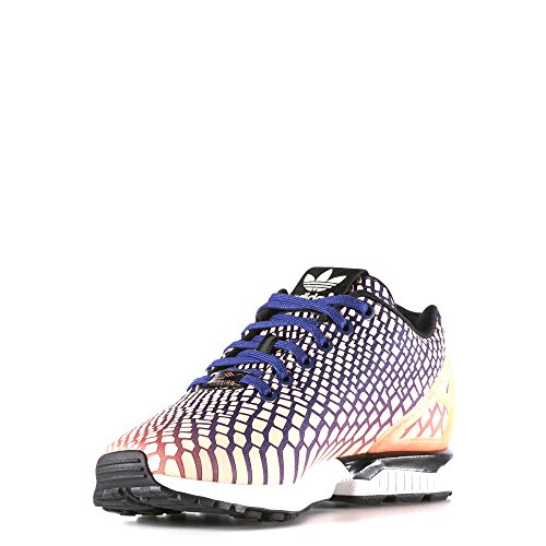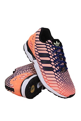 The ZX legacy pushes into the future with the Flux. These shoes explore new style possibilities by putting the crisp, clean running-inspired look in a reptile patterned upper. Inspired by a snake called the Xenopeltis, it features a reflective finish that explodes into vibrant colour in bright light.Feature
