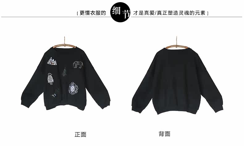 刺绣落肩长袖卫衣