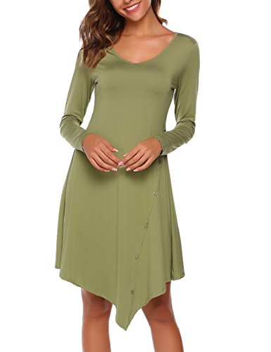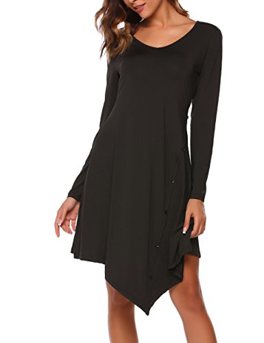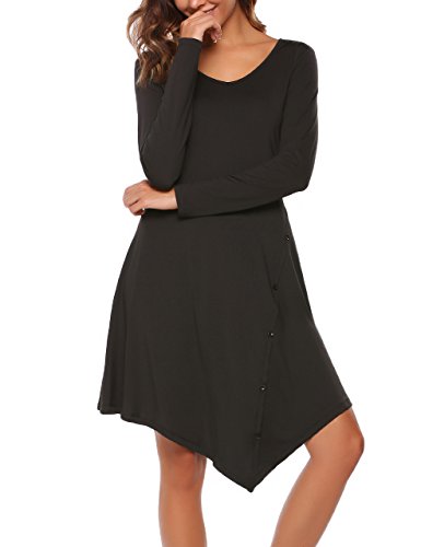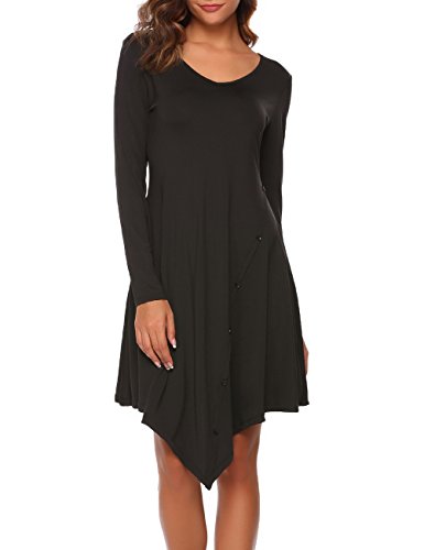 Features: Long Sleeve, O-Neck, Knee Length, Irregular Hem, Casual Style.