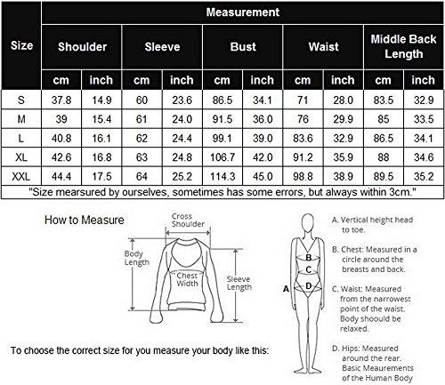Size: There are 5 sizes (S, M, L, XL, XXL) available for the following listing. please allow 1-2cm differs due to manual measurement, thanks (All measurement in cm and please note 1cm=0.3937inch)