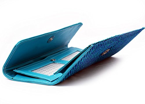 This is very beutiful Blue Color 3 Fold Chex Design Clutch Wallet & Card Holder with Five Compartments for women and Fully man made you can Put into bills, change, credit cards, photo, ID card, business card, cellphone etc it is very comfort way to handle all this thing with you all the time and every where and also It is very elegant and suitable for many occasion like party, shopping, restaurant etc