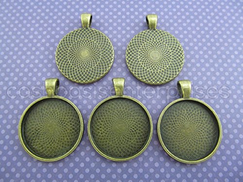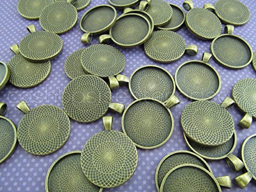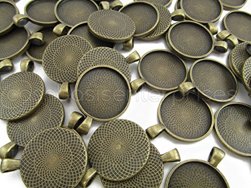 20 CleverDelights Round Pendant Trays - Antique Bronze Color - 25mm 1" Diameter - Pendant Blanks Cameo Bezel Cabochon Settings - 25 mm 1 Inch