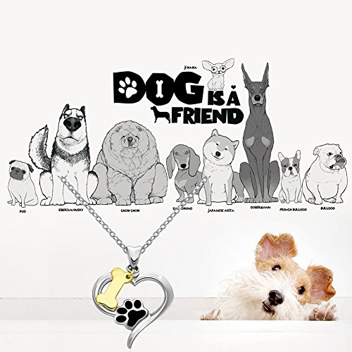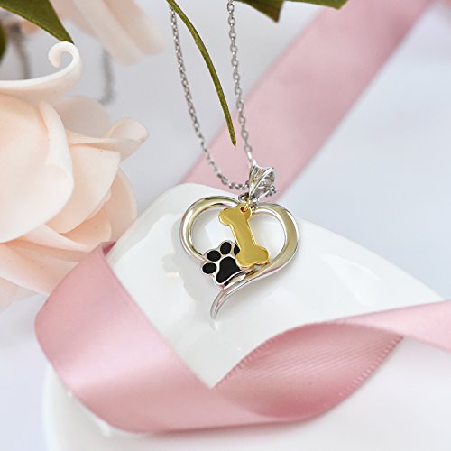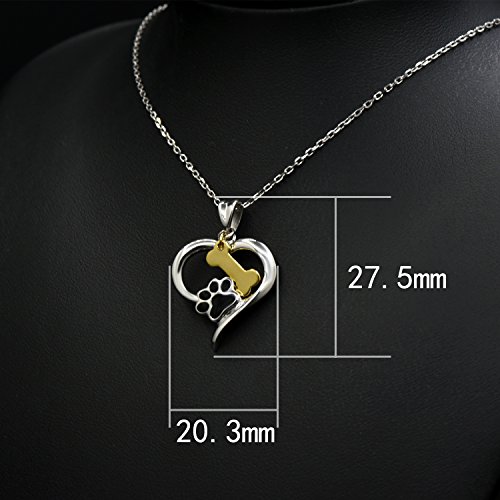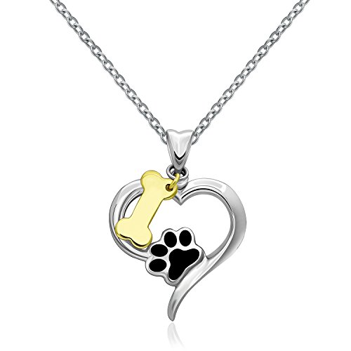 -. Feature : PENDANT SIZE: 27.5mm*20.3mm, two tone plating over silver, black enamel paw print, gold plating bone, dog lovers would love this necklace! / CHAIN SIZE: 18'' cable chain, with 5mm extender chain that you can use to change the length to fit / NECKLACE MATERIAL: made of hypoallergenic solid 925 sterling silver, Nickel-free, Lead-free, Cadmium-free and Hypoallergenic, long time wearing high quality silver jewelry will be good for your health / HANDMADE EXQUISITE CRAFTMANSHIP: yellow gold and rhodium two tone plating on this silver pendant,very lovely pendant set , great gift to your girl, also perfect to buy yourself this piece to fit any T-shirt or dress. / GREAT GIFT: Wonderful choice with reasonable price