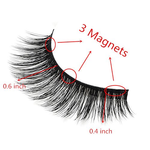 -. Feature : ★Glue-free design:These magnetic eyelashes have adopted glue-free design,so you don't need to worry anymore about the smelly eyelash glue that irritates your eyes and making them uncomfortable.Hollow magnet design can reduce the weight of magnet without affecting its magnetism,making you hardly feel the existence of false eyelashes. / ★Innovative three-piece magnet design:By adding another piece of magnet in the middle,we have successfully solved the loose mid-piece problem complained by many customers,to give you the feeling of having them absorbed to your eyelids. / ★Using imported mink hair:Unlike other products using fiber material, our eyelashes are made of mink hair imported from Korea with pure handcraft.Soft and glossy mink hair makes our eyelashes more natural and comfortable to wear. / ★Easy to use:No matter where and when you are,In just seconds,your eyes will look brighter and larger.When taken care of well,these lashes can be used again and again,saving you money. / ★Money Back Guarantee-Our product is cruelty-free and made with 100% customer satisfaction in mind.For any reason you are not satisfied with our magnetic eyelashes,please let us know and we'll instantly refund 100% of your money!