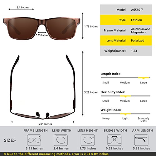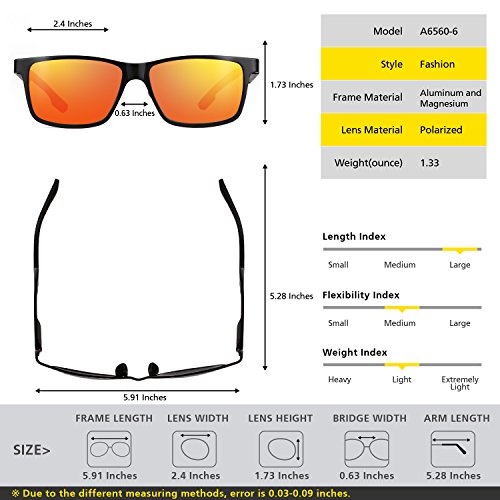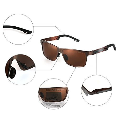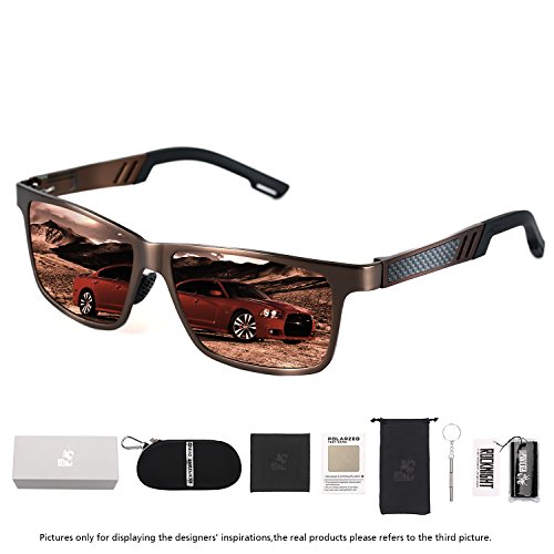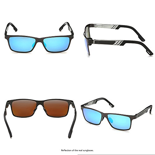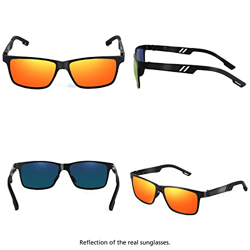 -. Feature : Polarized: polarized lens eliminate reflection and scattered glares, restores vivid color. / UV Protection: 100% UV Protection Against Harmful UVA/UVB Ray / Fashion Outlook: resistant metal frame made of Al-Mg alloy,tinted mirror lens / Wayfarer Style: wayfarer sunglasses suitable for outdoor activities,like hiking,fishing,trekking, traveling and more / Outdoor Design: with various accessories like case with zipper,string pouch,cleaning cloth and screwdriver,easy for you to clean and carry around