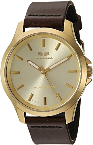 -. Title : Vestal Quartz Stainless Steel and Leather Casual Watch, Color:Brown (Model: HEI393L13.DBBK)