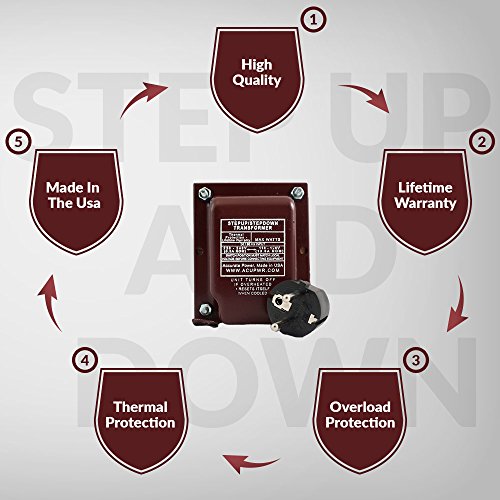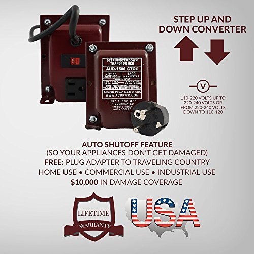 American-made ACUPWR voltage transformers/converters are the best available and not to blow up or put on a fireworks display. You might think were kidding, but research the cheaper, Chinese-made brands; they’re notorious for breaking down, catching on fire, and taking your valuable appliances down as well! Don’t risk it: ACUPWR is renowned for safety, reliability, and longevity. And not surprisingly, they’re used extensively by the US military, NASA, and united nations. Our transformers and converters use premium components copper wire and laminated silicon steel core sand they’re safe for continuous use at 120-percent beyond their stated wattage. Further, they can handle bursts of 200-percent wattage for a short period. Unlike our competition, ACUPWR transformers/converters use thermal protection, not fuses. When an ACUPWR transformer/converter is overheated, it simply shuts down, returning to operation after a few minutes. Our CE-certified AUD-1500 step down/step up model is designed for 110-120 volts to 220-240 volts operation, and vice-versa. It features a schuko type F output and a NEMA 15-R (Type B) output. Included is a plug adapter for use in 220-240 volts regions beyond great Britain.Feature