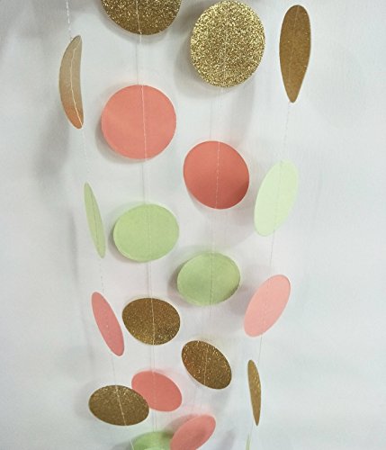 New Release Bachelorette Party Decorations peach glitter gold mint paper garland kit for mint green peach and gold decorations/polka dot paper garland for baby shower. A mixed peach gold mint decor bright color set that will light your party/wedding/baby shower/ Bridal Shower Decorations.