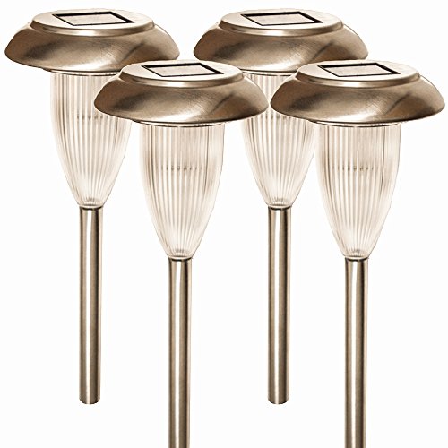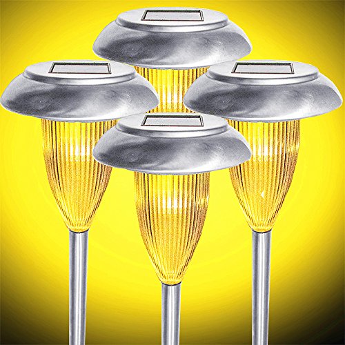 Solar Lights,Sogrand Outdoor Garden Path Stake Light,Warm White LED Pathway Lighting Stainless Steel,for Patio Yard Walkway Driveway Landscape Pack of 4