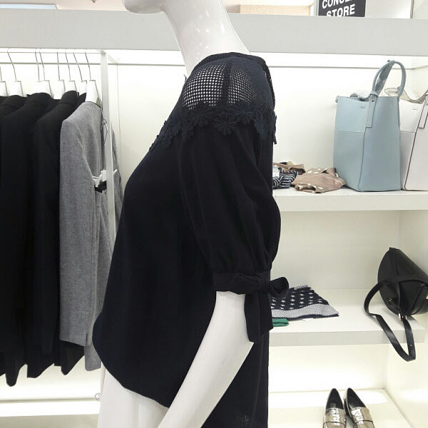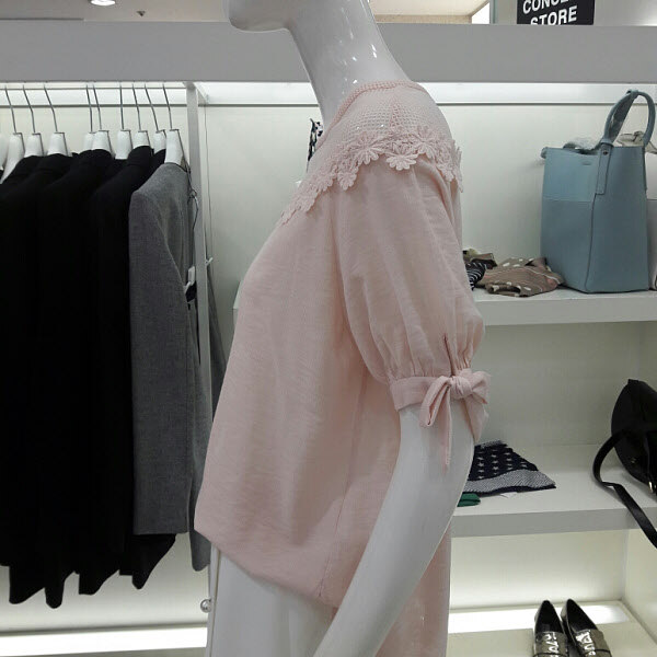 라운드넥에 펀칭레이스가 고급스럽고 멋스러운 블라우스입니다 소매리본포인트가 여성스러우며 리본으로 소매통 조절이 가능합니다 스커트 바지에 다 잘어울리는 깔끔한 스타일의 블라우스입니다